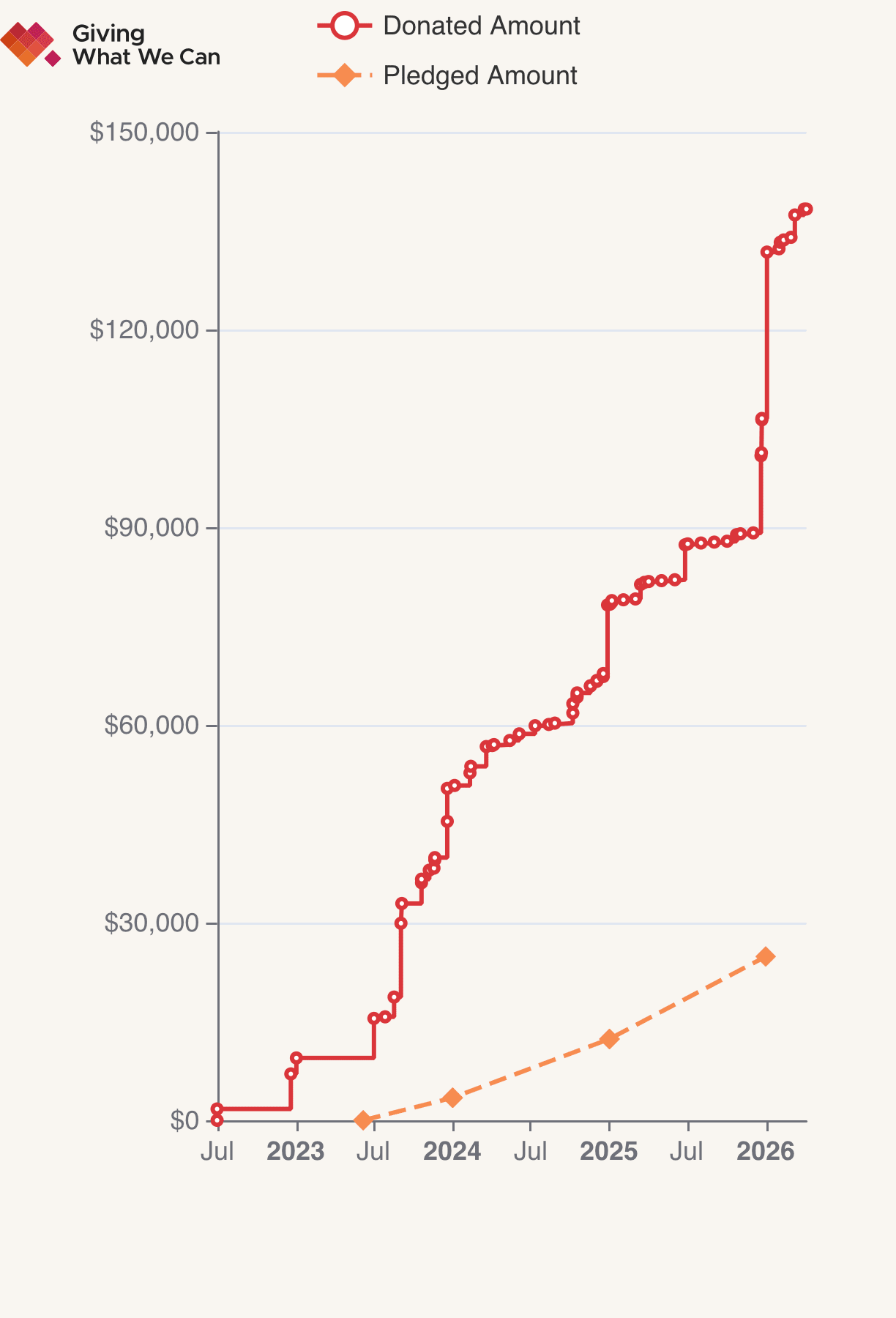 Other than my replies to the annual forum post, I haven't written much about my giving, but I suspect there could be quite some leverage in me doing so, given how committed I am (the TLDR is I have taken something similar to a Further Pledge, and have lived off less than ~30,000 USD in the last ~3-4 years), and I'd love to inspire others to show them what's possible.